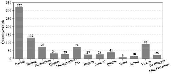 The number of public transit lines was provided by the transportation bureau of 13 cities in Heilongjiang Province, as shown in Figure 3.