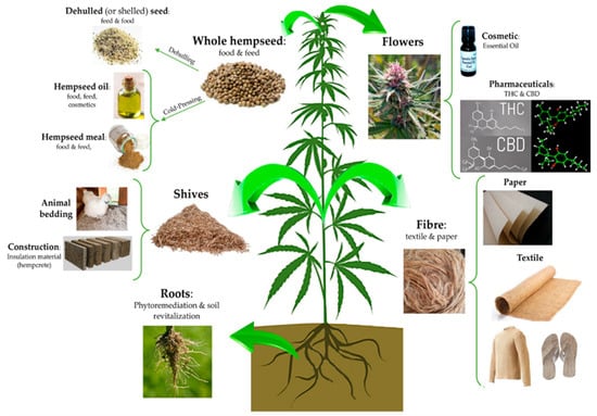 The many applications of the industrial hemp plant, (CC BY 4.0) [33].
