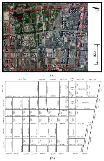 Figure 3. Description of case network. (a) Aerial view of the network. (b) Simplified network structure.