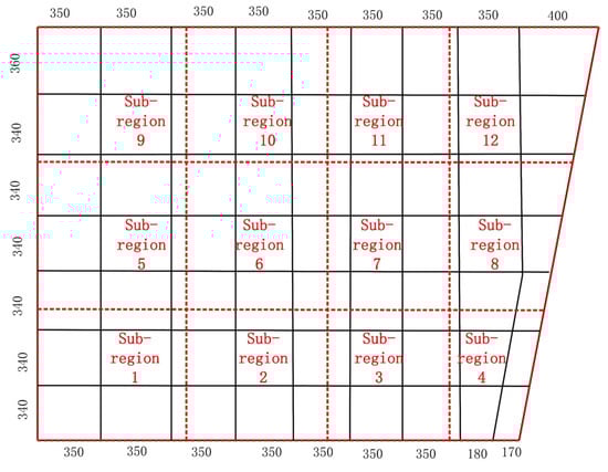 In this study, the network is divided into 12 sub-regions according to 800 m steps, and the sub-regions are numbered as shown in Figure 11.