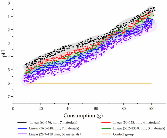 The amount of adhesive used had a linear effect on the acid resistance of the mud skin, with a pH of 0.5–4.8. The amount of cellulose used had a linear effect on the acid resistance of the mud skin, with a pH range of 0.8–5.2. The amount of building improvement materials had a linear effect on the enhancement of the mud skin’s acid resistance. Additionally, the amount of mineral-modified materials had a linear effect on the acid resistance of the mud skin, with a pH of 1.9–6.2. Notably, the amount of plant-improved materials had a linear effect on the acid resistance of mud skin, with a pH range of 2.7–6.8. There are 56 kinds of improved materials that exhibit the best results.