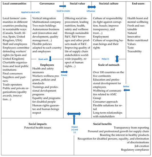 In the same fashion as in sector-level analysis, secondary data have been gathered to depict the TLBMC items for the selected company, based on available information about F&V markets and particularly the AMC Group. The collected data have been used to illustrate the three canvases of the TLBMC which have been developed for the selected company to assess the move toward sustainable value creation. Data sources included national and international platforms like Statista, other online databases from national, European, and international sources such as the Spanish Ministry of Agriculture, EUROSTAT, FAOSTAT, WHO, OECD, company reports, published articles from different publishing platforms, and conference and seminar papers. The collected data about the company were first reviewed and analyzed, and then relevant information was included in the three canvases of the TLBMC as shown in Section 4.