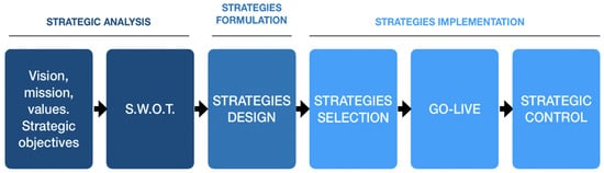 - Strategies selection. In the selection process, companies will define how to develop value. To do this, they will set the objectives and the action plan to achieve them. So, they must clearly specify what and how they are going to do it, and sometimes it is better to develop a small set of priorities that everyone supports in order to produce results [110].
