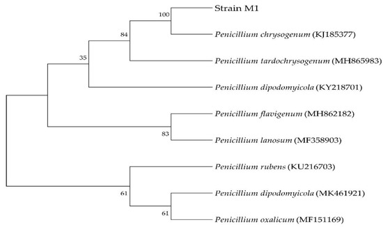 2.5. Identification of the Fungal Isolate