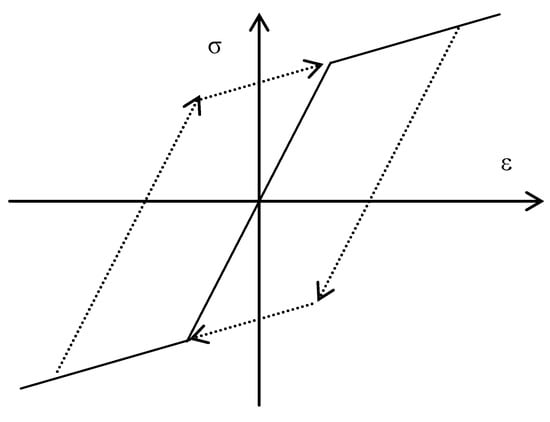 Figure 9 shows the dynamic hardening model of steel. The nonlinear material model of steel adopted a bilinear kinematic hardening model, which implied no stiffness hardening during the cyclic process, but considered the Bauschinger effect [18,19]. The ratio of tensile strength to yield strength of the steel used is 1.2, and the ratio of plastic deformation that occurs when the yield reaches the original size of the component is 0.025.