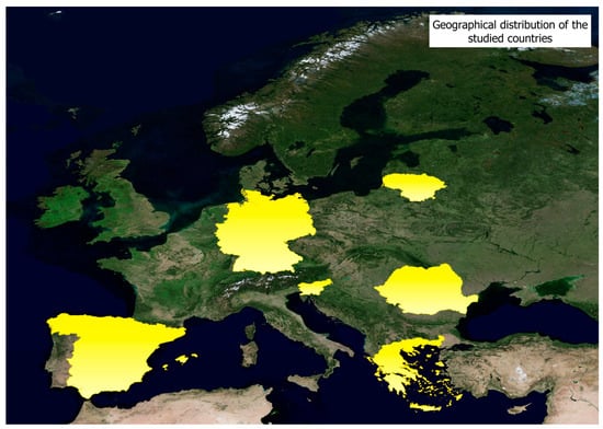 The geographical distribution of the studied countries (source: own elaboration in QGIS).