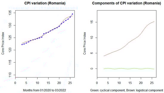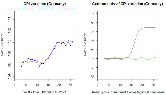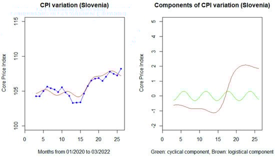 Comparing the following two countries: Germany and Slovenia, both being also in the Euro zone, we found the presence of similar coefficients of the regression model, with effects in the clearly logistic increase of the CPI in July–September 2021, a relatively small seasonal influence (derivate from the restrictions of successive pandemic waves) of the consumer price index for Germany, but three times higher for Slovenia. Also, if for Germany the price of oil did not have an immediate impact on good’s prices, in Slovenia, there is a quantifiable influence of this phenomenon. The explanation stems from the fact that the German economy is much more robust to volatile price changes, and the pandemic waves have not greatly influenced the behavior of shoppers, who have long been accustomed to online commerce.