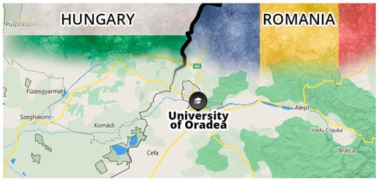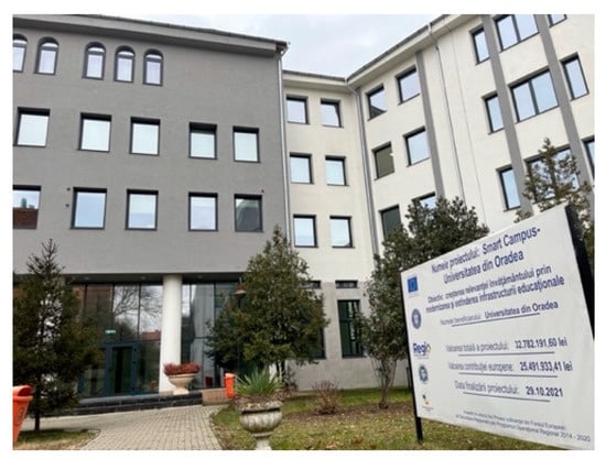 - University of Oradea. Google Maps. Available online: https://www.google.com/maps/place/Universitatea+din+Oradea/@47.0446787,21.9179081,17z/data=!4m6!3m5!1s0x4746479564d81847:0xda97ccf1bcea0869!8m2!3d47.0446751!4d21.9201021!16zL20vMDU4NWow (accessed on 15 January 2023).