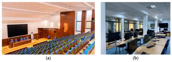 (a) “Aula Magna”; (b) “Smart Mat” laboratory.