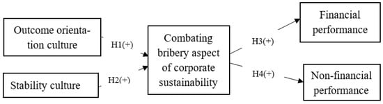 Employees in organisations where stability culture is being practiced value stability [43]. Such stability includes the stability/security of employment, and financial and leadership stability, being calm and low-conflict [25,43]. It is logical to assume that the existence of stability culture will promote employees not to involve in taking/offering illegal financial benefits in exchange for rendering and/or receiving services. This is because financial or job security reduces the risk of facing financial hardship in the future, which leads employees not to be reckless to generate illegal money for future safety. Accordingly, we assume that the existence of stability culture reduces the likelihood of participating in bribery practices, and thus enhances corporate sustainability practices. Therefore, we hypothesize that: