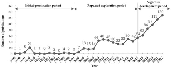 Documented statistics of rural living environment publications volume, from 1992 to 2022.