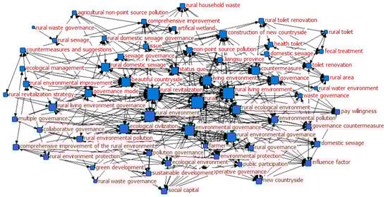 Based on the above results, we have a preliminary understanding of the external characteristics of the sample literature. Improving the rural living environment is an important part of realizing rural revitalization. The Chinese government, and people from all walks of life, have been working towards this goal. However, as of now, China’s rural environmental problems have not yet been fully addressed. We have a long way to go to study it. Therefore, it is necessary to dig deeper into the research content of rural living environment improvement and explore research hotspots and development directions.