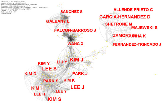 In combination with the above collation and analysis of authors and cooperative teams, CiteSpace is used to further construct the author cooperative network, as shown in Figure 3. The figure highlights three major cooperative groups: a cooperative network composed of Korean scholars with the core of Lee S., Kim Y., Park S., etc. The cooperation network comprises European and American scholars with Sanchez S., Falcon-Barroso J., et al. as the core, and Garcia-Hernandez D., Zamora O., Majewski S., et al. as the core, as seen in Table 5. Several core members of the major cooperative network ranked in the top 10 in terms of individual publication volume, whereas the other authors had relatively weak cooperative relationships. Overall, the number of papers published by digital economy research teams is limited, the cooperation situation is weak, and the scale of researchers included in the team is not large. Additionally, influential researchers in the field and the cooperation network have yet to be established. It is imperative to further develop and expand these networks in the future.