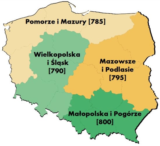 The specific features of this region also dictated the choice of the Małopolska and Pogórze Region. It is distinguished by a high percentage of people living in rural areas in the total number of inhabitants and by very fragmented agriculture with a small production scale. This is also accompanied by other problems related to the development of rural areas, such as a high share of people working in agriculture; a high level of unemployment, especially in the Świętokrzyskie and Podkarpackie voivodships; underdevelopment of rural infrastructure; border location (eastern and southern borders of Poland); and high legally protected areas in the general area of Małopolska and Pogórze. The selection of farms from this region also resulted from the fact that no such research had been carried out in this area before.