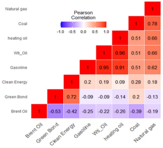 In this study, we focus on the US markets, which remain the largest source of green debt, with a total of USD 52.1 bn (18%) (Climate Bonds Initiative, 2020 [6]), and the world’s largest energy and financial trading markets. With these characteristics, the US market can effectively reflect the co-movement of the GB markets with the CE stock and fossil fuel markets. Meanwhile, we consider Brent crude oil in identifying the impact of crude oil on GBs, as this oil type is the most volatile of the fossil fuel products.