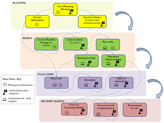 Regarding the use of the “play card” from Simos’ procedure, it is important to note that it brought benefits to the proposed model, as it requires less cognitive effort from the DM to assign weights to the criteria, a characteristic that can reduce the elicitation time, which is a limiting factor for investment decisions [33]. As a consequence of this, using the procedure could minimize the inconsistencies of the decision-making process, since the DM could evaluate and define in a simplified way the weights that he/she would consider in the decision-making process [33,34,35].