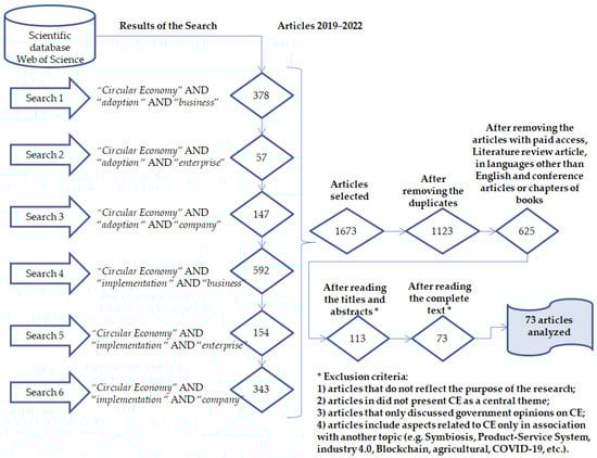 As evaluation criteria, the factors that influence the transition of the organizational level to the CE will be used. To identify the criteria, we have conducted a systematic literature review and adopted the search protocol proposed by [18]. By reviewing the literature, it was observed that there are two main categories: () catalysts and ) obstacles. The catalysts factors, or drivers, are those that make the transition to the CE viable, i.e., those that motivate companies to implement the new business model and/or facilitate the transition process. On the other hand, obstacles factors, or barriers, consist of those that may discourage or obstruct the transition to circular business operations [18]. Figure 2 summarizes the search protocol and filtering process of the articles that were analyzed.