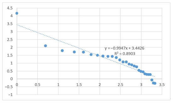 As we hope to test for the validity of Zipf’s law with regard to idle land in this paper, Equation (2) thus can be transformed into Equation (3) as follows:
