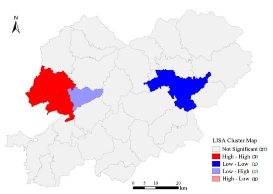 - Anselin, L. Local indicators of spatial association—LISA. Geogr. Anal. 1995, 27, 93–115. [Google Scholar] [CrossRef]