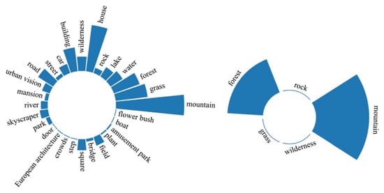 LECs of different types of idle land use show different focuses. While the LECs of industrial idle land areas are more emphasized on mountains and buildings, the LECs of park idle land areas are focused mainly on forests, mountains, roads, and squares (Figure 13).