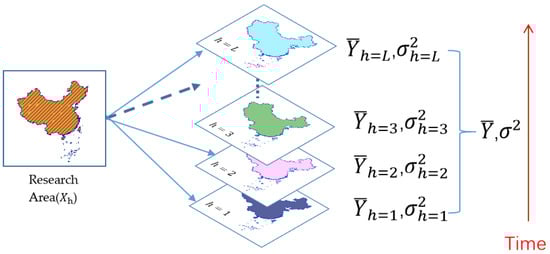 where h = 1,2, …, L are the strata of a certain factor x in the study area for 1,2, …, L years; Nh and N are the number of units in layer h and the whole area, respectively; and