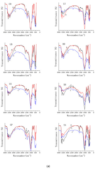 3.2.1. Fourier Infrared Spectroscopy Analysis of Three Groups of Complexes