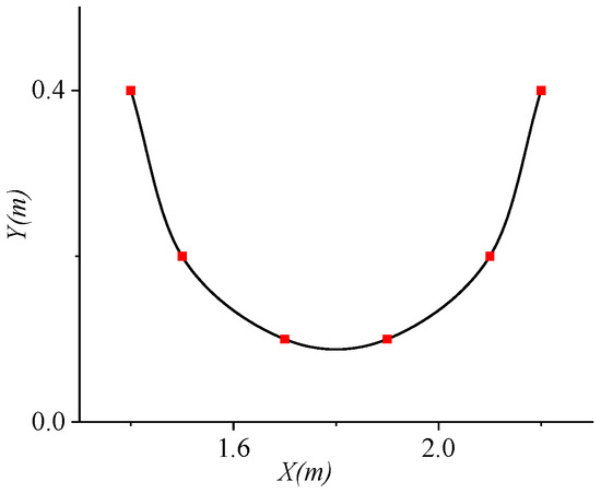 As demonstrated in Figure 7, the target trajectory of the end of the excavator bucket was given in the Cartesian coordinate space. The selected target trajectory is the trajectory of the excavator excavation operation, and six key points are selected following the discretization of the target trajectory.
