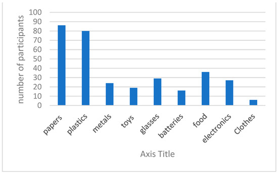 The proportions of the materials they collected for recycling are shown in Figure 8. Paper and plastics are the most commonly recycled materials.