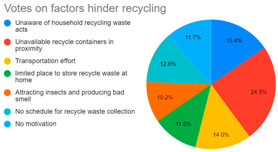 Percentages of votes on factors hindering household recycling.
