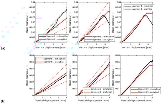 By replacing with the terms defined by Equations (19) and (20) the strain developed in the ligament can be determined thus: