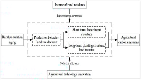 3]. In September 2020, China put forward the “dual-carbon” goal of achieving carbon peaking by 2030 and carbon neutrality by 2060. In 2021, the Chinese government issued the Opinions on Fully, Accurately and Comprehensively Implementing the New Development Concepts to Achieve Carbon Peak Neutrality and the Action Plan for Achieving Carbon Peak Before 2030; both plans explicitly stated that carbon emission reduction and sequestration in agriculture should be promoted. At the same time, China’s chronically low fertility rate, longer life expectancy, and accelerated urbanization process have made the problem of the aging rural population become increasingly prominent. According to the China Statistical Yearbook, the level of aging in rural China reached 17.7% in 2020, which is significantly higher than that in urban areas. In this context, ways of ensuring food security, clarifying the relationship between food security and emissions reduction, realizing the transformation of agricultural production to green, low-carbon and sustainable development, and effectively responding to global climate change are all particularly important issues.