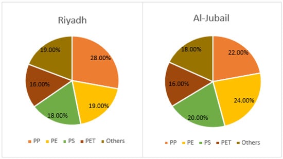 Average percentage of polymers from surface water specimens in Riyadh and Al-Jubail towns (Replot from data in Pico et al. [22].