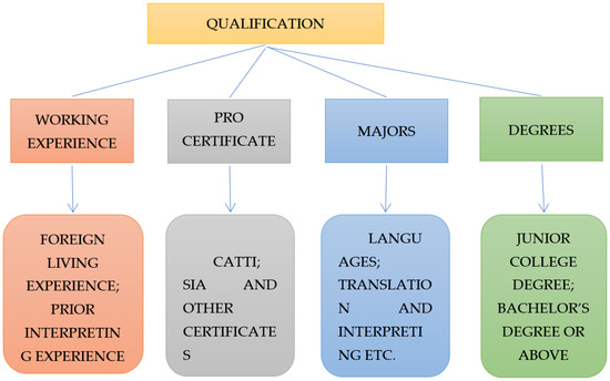 What intrigues us is that the needs of market remain consistent, as shown in Figure 3: (1) years/times of interpreting experiences, (2) qualification certification obtained, (3) translation or interpreting related educational background, and (4) expertise of interpreting. As summarized above, the needs of the market are goal-oriented [24], and the market only takes certain indicators, such experience, degree, or certification, into account to make sure the interpreters they hire can do the job as expected, i.e., all employers need is to get the job done excellently without considering what approaches are adopted, since more terminologies are currently involved in the interpreting service, and the burden of interpreters cannot be taken carried solely by brain. In all, acquiring certain skills in using modern technology as the auxiliary role in interpreting service should be brought to the table [25,26,27,28].