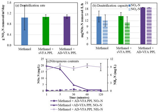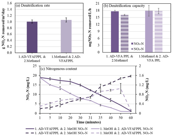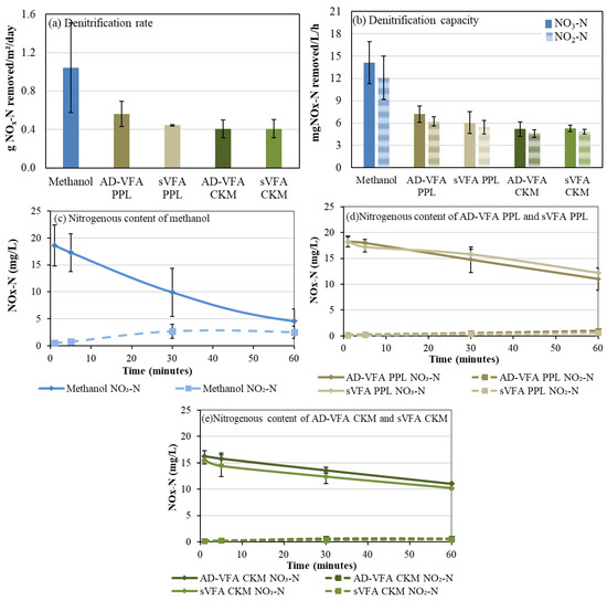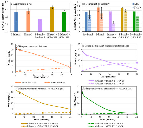 - Elefsiniotis, P.; Li, D. The effect of temperature and carbon source on denitrification using volatile fatty acids. Biochem. Eng. J. 2006, 28, 148–155. [Google Scholar] [CrossRef]