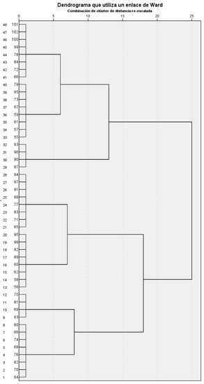 Taking into account the answers given by the 102 teachers surveyed, it is possible to identify which teaching approach each of them is closer to. This is important in understanding whether heritage is taught with a more traditional or more student-centered methodology, or an intermediate position in which the teacher assumes a leading role although student participation is greater than in the traditional model. For this purpose, a hierarchical cluster analysis was carried out using SPSS v.28 on items related to strategies, resources, types of activities, assessment and contents (first- and second-order).