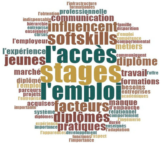 As shown in (Figure 3), several factors influence the access to the employment: diploma/training, professional experience/internships, and transversal skills/soft skills.