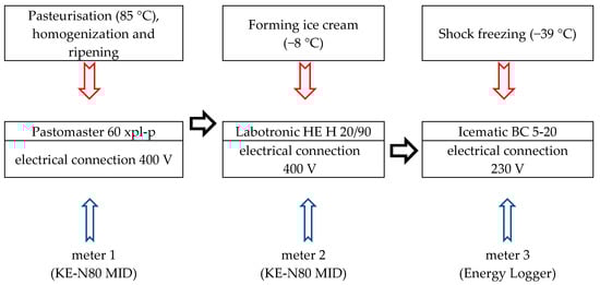 The description of commercial products by means of the CF indicator has recently been reached also by large retail chains, interested in emphasizing the connection of their activities with the concept of sustainability and educating consumers for organic and healthy food [58,59]. Thus, whenever new product technologies are developed, a CF analysis should be done already at the stage of testing it. Therefore, the proposed research addresses this need. The aim of this research was to determine the influence of ice cream manufacturing technology on rational energy management in order to create standards for new plant-based products. Activities were undertaken to determine the CF of technology involved in the production of traditional ice cream as well as ice creams with fat and sugar substitutes.