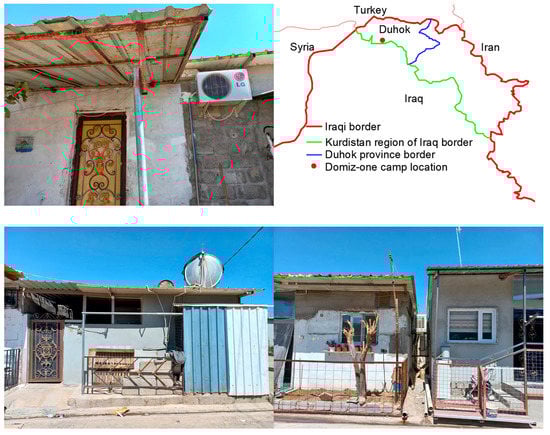 The Directorate of Migration and Crises Response-DMCR in Duhok City [48] stated in the last updated report (February 2023) that there are 108,393 families and 540,702 individuals displaced people in the Duhok governorate. Moreover, it mentioned that simply in Domiz-one camp (visited case-study as the largest Syrian refugee camp in Iraq) there are 29,232 refugees distributed to 6132 families while there are just 5496 shelters (Figure 1).