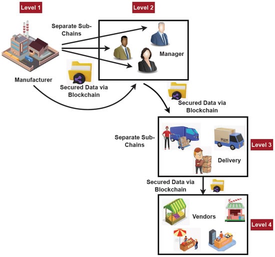 The layered architecture model of the blockchain enabled SCM framework is shown in Figure 2. Manufacturers frequently vary their supply chain network to include all regions of the world in order to give their customers the greatest possible user experience. Manufacturing businesses also extend their borders outside continents in order to take use of the advantages of inexpensive labor, the accessibility of materials, advantageous legislation, and a substantial customer base. Even a single weak link in the network can cause interruptions and delays in such a fiercely competitive industry, which can negatively impact customer satisfaction and have a significant impact on a company’s financial performance. Each of these manufacturers develops a unique product database that comprises the information such as item description, quantity, weight, brand label, etc. The manufacturers upload their data to the blockchain, which then creates a unique sub-chain for each manager. As a result, by restricting unauthorized access to information, the security of the blockchain is increased to a greater extent. The managers typically generate their own sub-chain for the vendors by gaining access to their sub-chains.