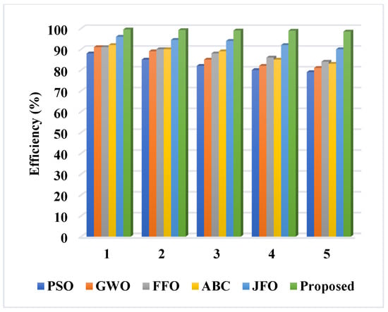 This section presents the results and discussion of the existing and proposed optimization-based blockchain methodology used for supply chain management. Blockchains are a cutting-edge technology that, from the standpoint of insight, have the potential to revolutionize current business practices. Blockchain technology is revolutionizing product safety in this context, taking into account its contribution to the real world, due to advancements in accountability. As a result, product provenance will improve life quality and lower the cost of application systems. Blockchain applications have already had an impact on social transformation, environmental sustainability, and even the preservation of the environment. For performance assessment, the dataset named Dataco_Smart_Supply_Chain, obtained from Kaggle [52], has been used in this work. Here, various optimization techniques, such as particle swarm optimization (PSO) [53], grey wolf optimization (GWO) [54], firefly optimization (FFO) [55], artificial bee colony (ABC) [56], and jellyfish optimization (JFO) [57], are considered for comparative analysis. Moreover, various measures, such as efficiency, key sensitivity, correlation coefficient, etc., are used for validating the results.