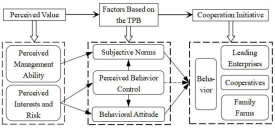 According to the theory of perceived value, the individuals can perceive and evaluate the management ability, benefit acquisition, and risk management before they decide whether to choose positive cooperative behavior. The question is whether the perception of interest occurs before the three control conditions, according to the planned behavior theory. In other words, does the perceived value have an impact on the subjective norms, perceived behavior control and behavioral attitudes and, subsequently, does it indirectly affect the initiative toward cooperation of members? Does perceived value directly affect the members’ behavior, and does this effect significantly exceed the role of the three conditions mentioned in the theory of planned behavior? Does the perception of management ability and benefit–risk perception operate in the same ways as the factors that affect subjective behavior? In the discussion of the cooperation-initiative factors in AIUs, do subjective norms, perceived behavior control and behavioral attitudes all have a significant influence? According to previous studies and practical research, neither of the theories mentioned above is sufficient to fully reflect the behavioral practices of AIUs. This study offers a reasonable explanation for the positive cooperative behavior of new agricultural-business entities, and then provides reliable support for the cultivation of operating entities and the construction of agricultural-cooperative organizations by comprehensively considering the perception of operating entities, their own attitudes and external constraints. To this end, this paper constructs a research hypothesis from a more comprehensive perspective to answer the above questions through empirical examination.