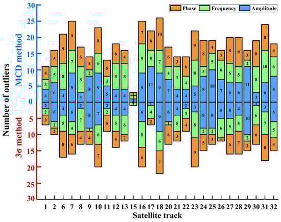 Outlier detection results of the triple standard deviation method and the MCD method for all satellites.
