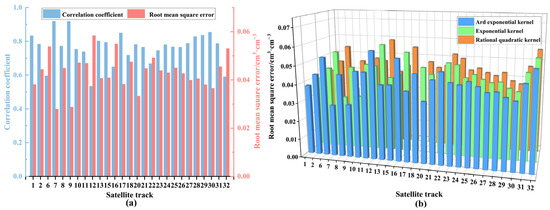 The inversion results of GPR models. (a) The inversion results of all visible satellites with the ARD exponential kernel function. (b) The inversion results of all visible satellites with three kernel functions.