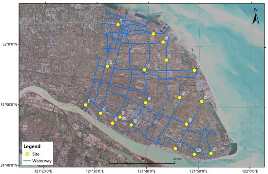 Meanwhile, ground observation data were collected at the same time as the Gaofen-1 data. In total, 20 locations are selected to cover the main rivers within the territory of Qidong (including Lianxing Port, Gaiyao River, Zhongyang River, Touxing Port, Tongqi Canal, Nanyin River, Sanhe Port, Daoan River, etc.). The samples were taken at 0.5 m underwater according to the technical specification requirements for the monitoring of surface water and wastewater within 2 h of the Gaofen-1 satellite data capture time. The assay parameters include CODMn, NH3-N, TP, and TN. The assay results of the water quality parameters from various sites are shown in Table 1 and were used for inversion. These water quality data are the result of a single measurement, and there may be a maximum random error of 5% in the measurement according to China’s water quality standards.