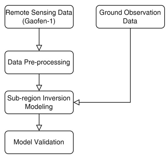 Flow chart of the sub-region inversion method based on Gaofen-1 satellite data.