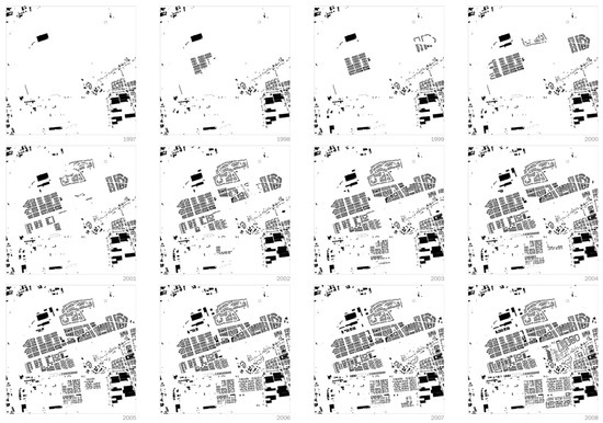 Evolution of the building fabric in the Ypenbug area [50] (author’s own, 2014).
