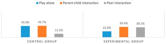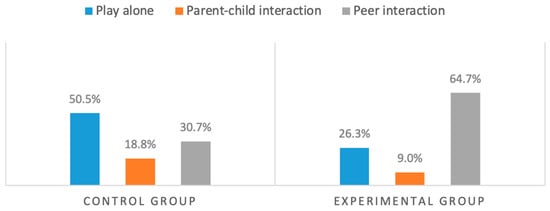 Moreover, play can develop the ability to differentiate between fantasy and reality and provide tools for adults to learn how children see the world. Hartup [20] reported that peers are crucial intermediaries in children’s socialization, influencing their gender-role learning, moral development, and control of aggressive behavior. Peers acquire social skills and establish interpersonal relationships through interaction. The development of peer relationships is closely related to children’s social abilities. These abilities develop their cognition and help children become more able to express and control emotions. Social play refers to social interaction through games, which require children to get along with others. This includes an ability to interact with others daily, such as through sharing, taking turns, and allowing others to express their opinions; self-control skills, such as appropriate control and expression of anger, are also part of social play.