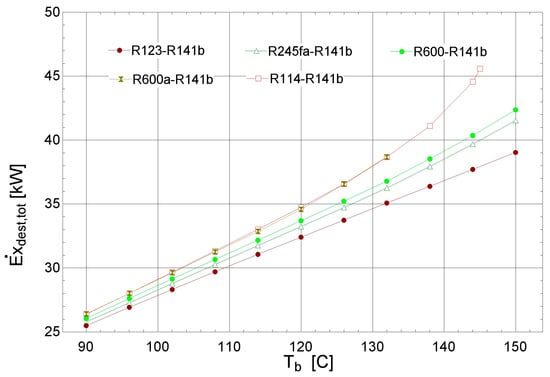 where total waste exergy out () is the sum of both the destroyed exergy of the system component and the lost exergy of the system, as shown in Equation (16).