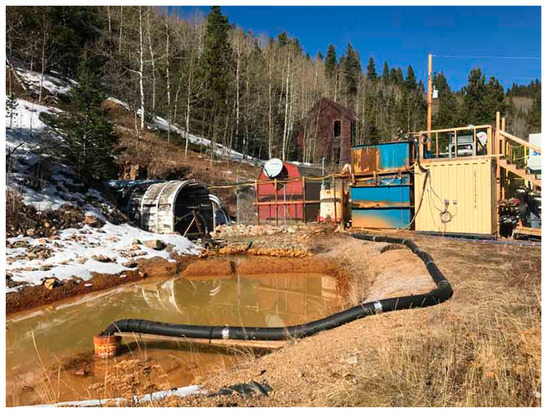 The active treatment system used at the Big Five Tunnel after the fish kill event downstream from the Captain Jack Mine Superfund site, 2018. Source: The Watershed Center [45].
