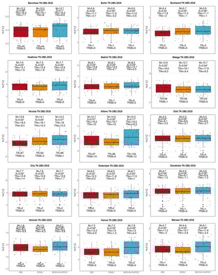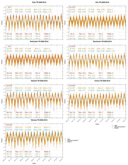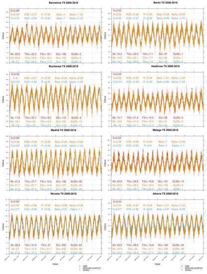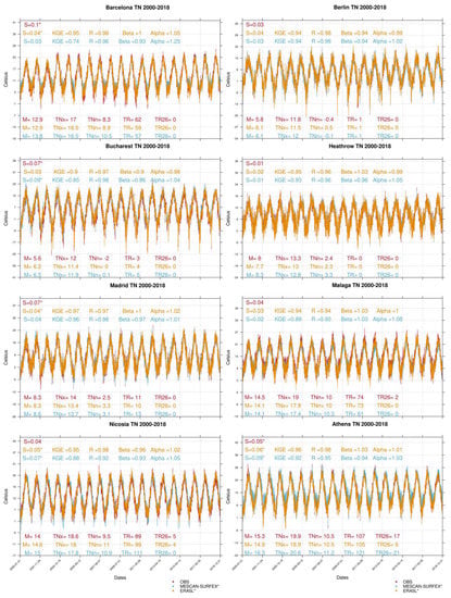- Klein Tank, A.M.G.; Wijngaard, J.B.; Können, G.P.; Böhm, R.; Demarée, G.; Gocheva, A.; Mileta, M.; Pashiardis, S.; Hejkrlik, L.; Kern-Hansen, C.; et al. Daily dataset of 20th-century surface air temperature and precipitation series for the European Climate Assessment. Int. J. Climatol. 2002, 22, 1441–1453. [Google Scholar] [CrossRef]